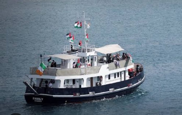 Sejumlah jurnalis, tenaga kesehatan, hingga aktivis, termasuk aktivis iklim Greta Thunberg, ikut dalam pelayaran ini.