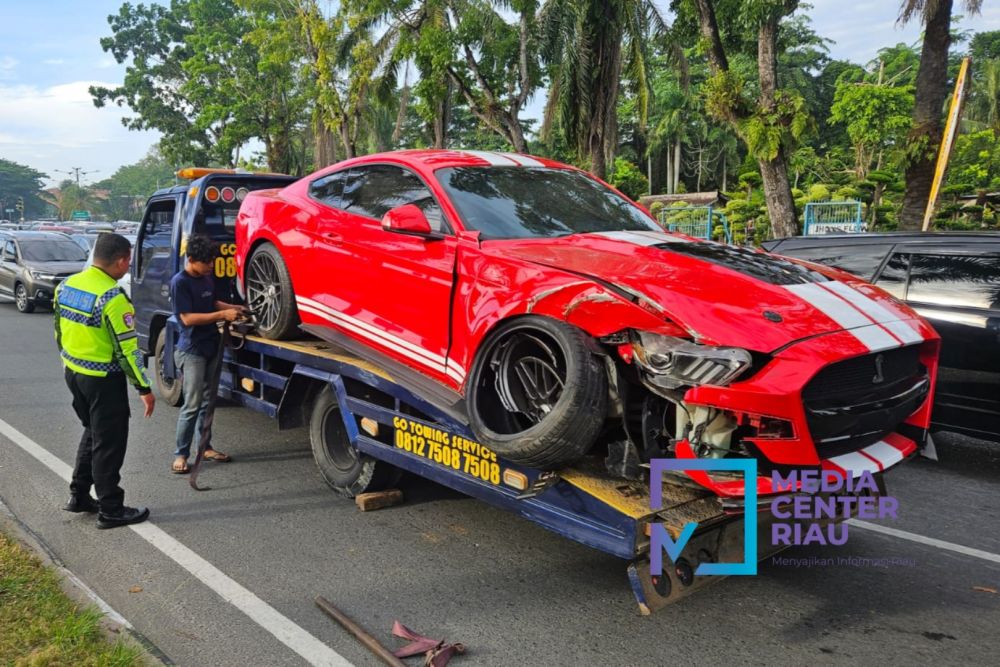 Mobil Ford Mustang bernomor polisi B 2980 WBG tersebut terlibat dalam kecelakaan di jalur barat Jalan Jenderal Sudirman, tepatnya di depan Hotel Batiqa, Kecamatan Marpoyan Damai, Kota Pekanbaru.