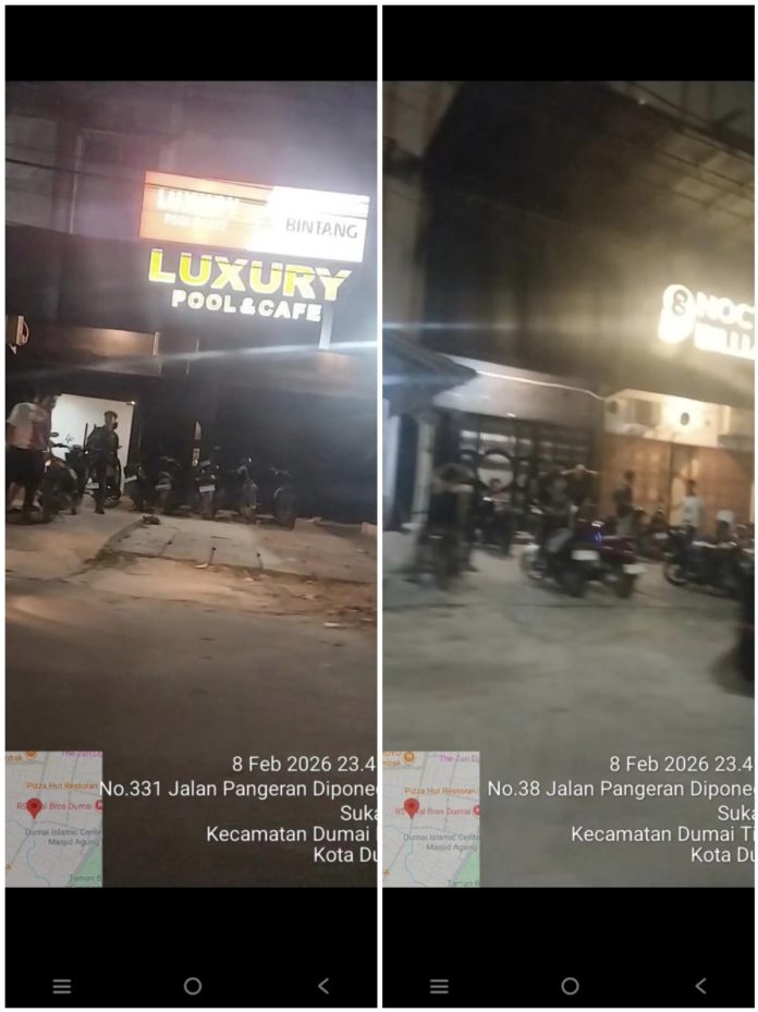 Adapun tempat biliard yang terpantau masih beroperasi melewati batas waktu tersebut di antaranya Luxury Billiard dan Nocturn, yang berlokasi di Jalan Pangeran Diponegoro, Kota Dumai.